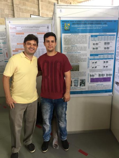 Caracterização da hipertrofia muscular esquelética induzida pela inibição da síntese de óxido nítrico. Professor André e o aluno de Iniciação Científica Lucas.